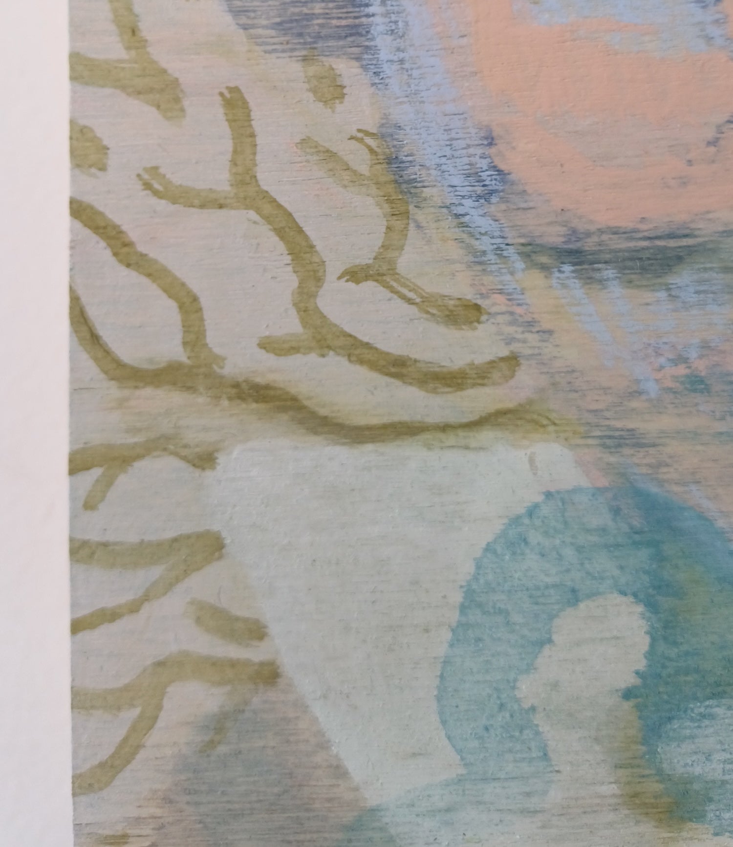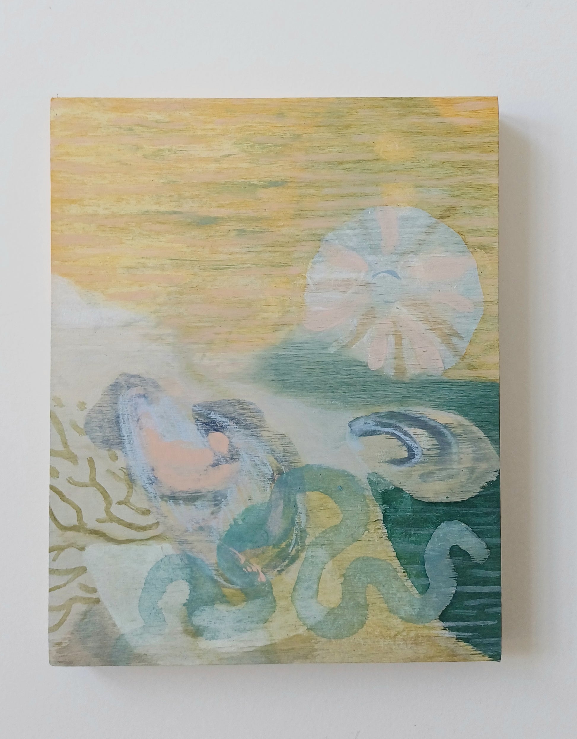 - Mixed media on wood panel