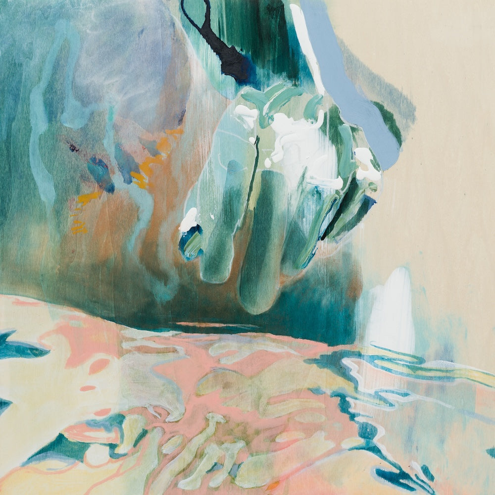 The figure, while present, remains ambiguous. A transparent hand holding a frond of seaweed; a hint of shoulder; legs dissolving into the patterns of light on the water. You might not even know they're there at first glance.