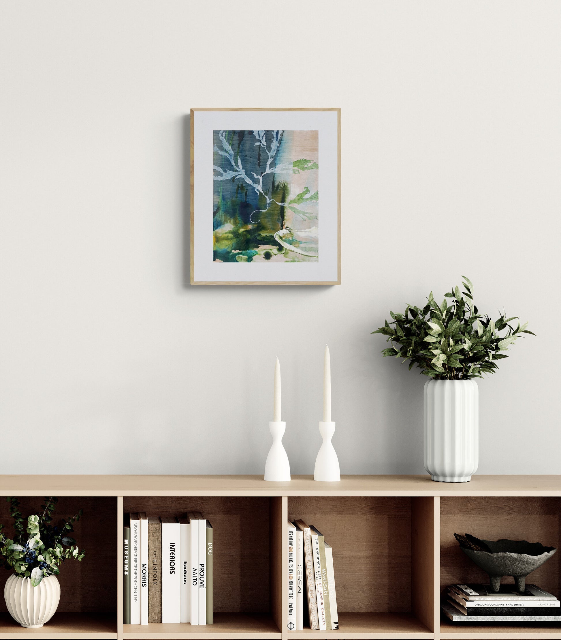 Inspired by a summer spent underwater, swimming off the south coast of Cornwall and developing a relationship with the abundant garden beneath the waves, this painting shares the experience of the graceful and silent dance of seaweed.