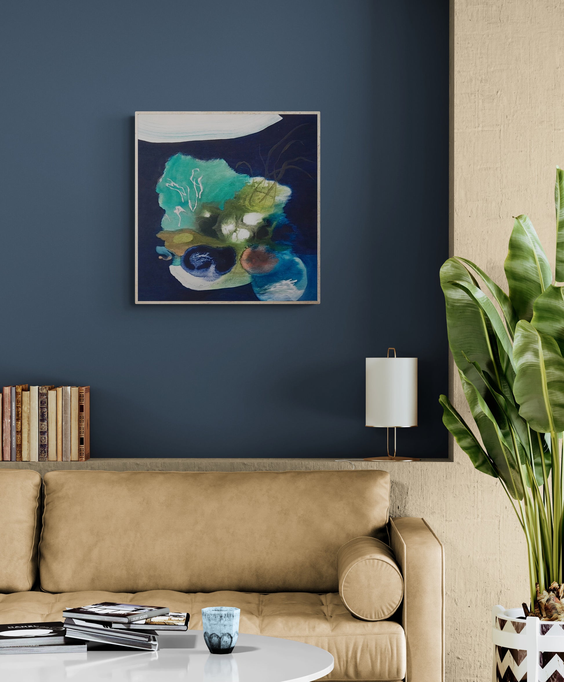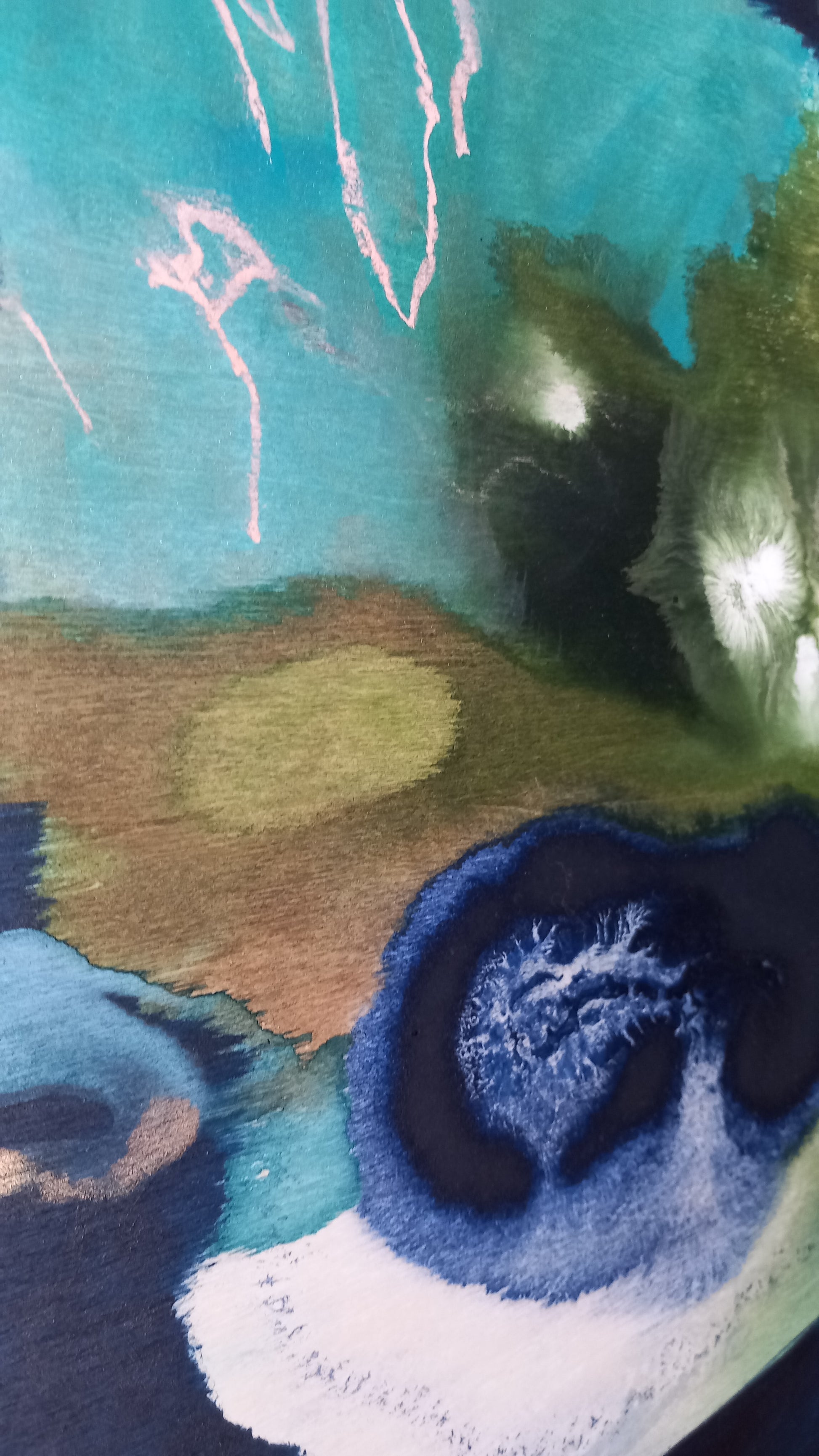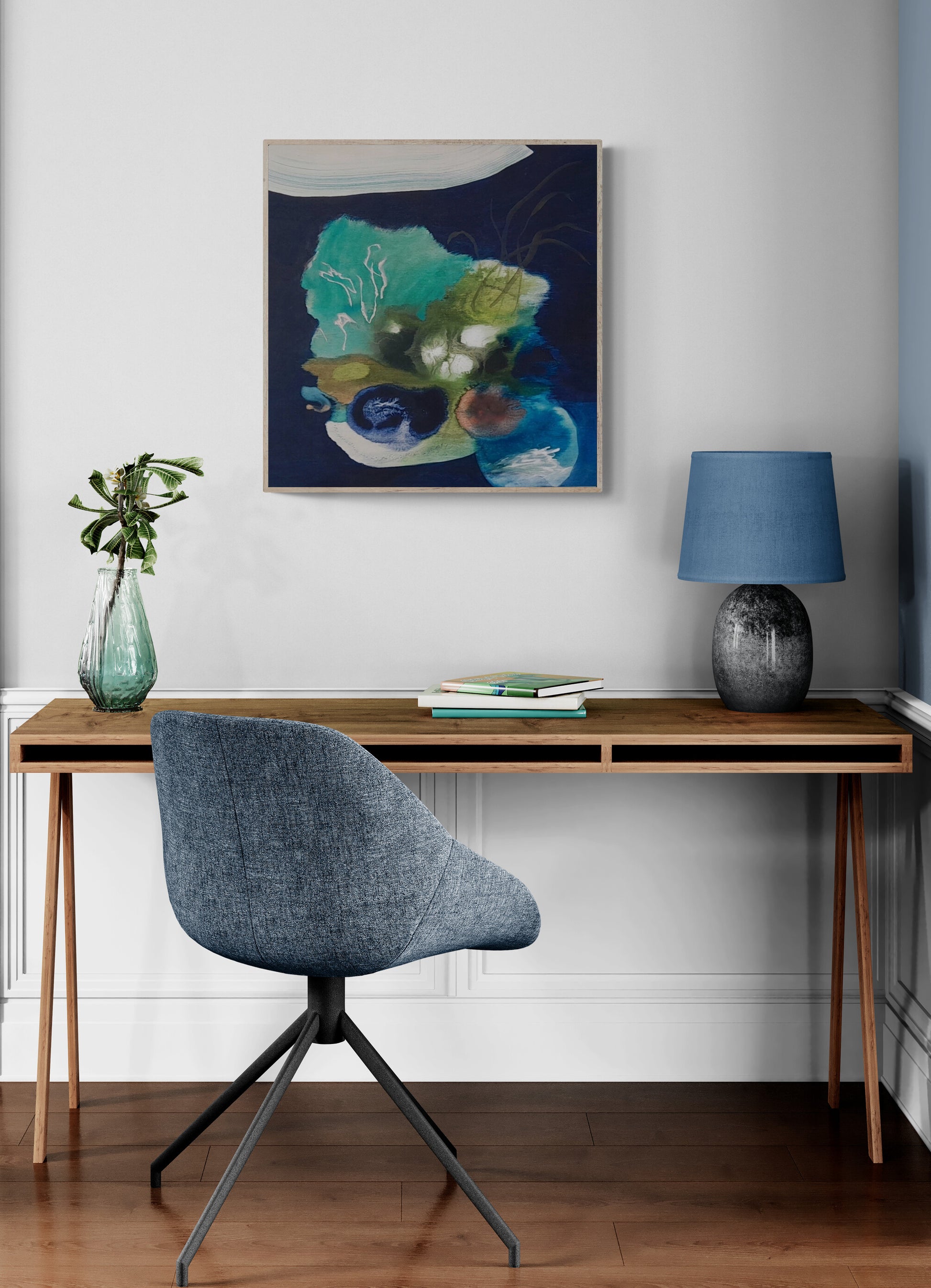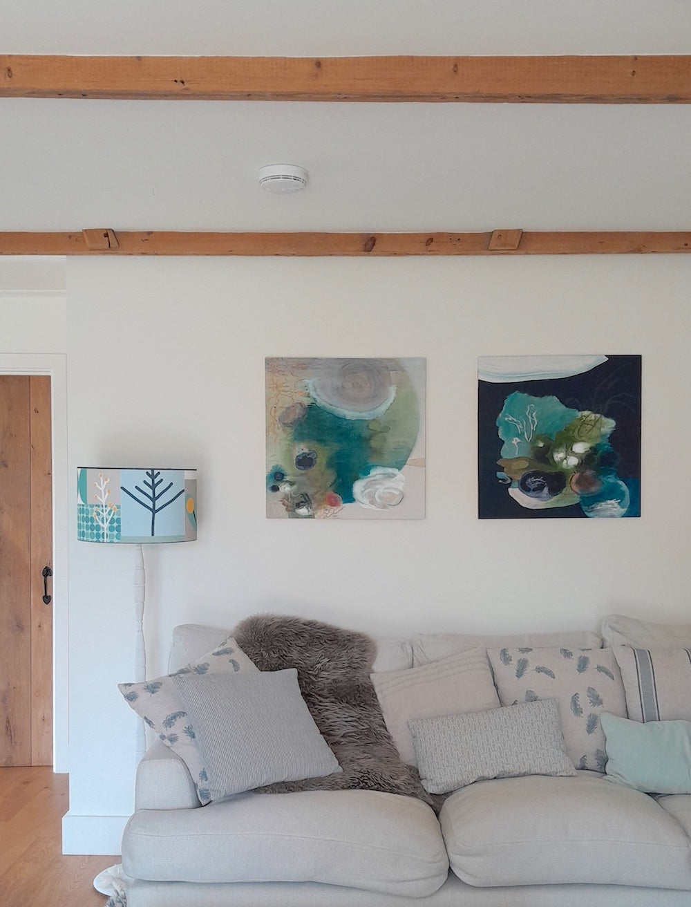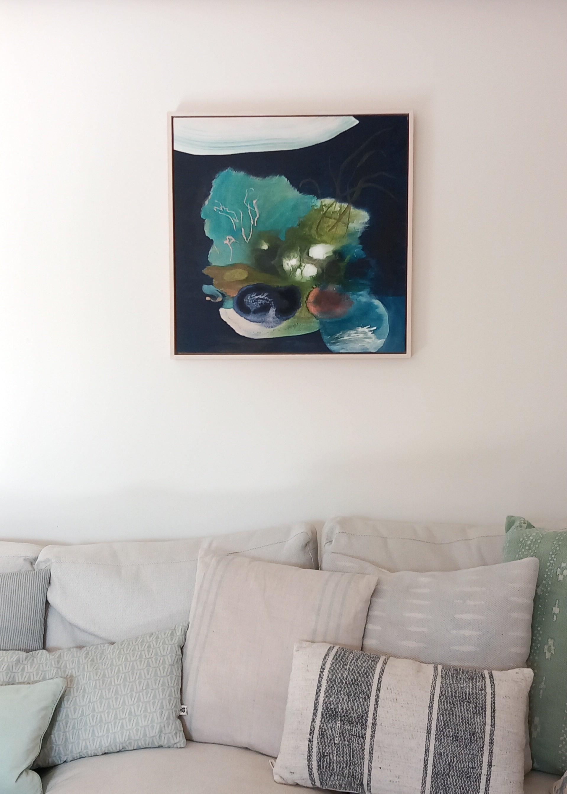Sea Minor is a statement painting, with its bold deep blue setting, and the feeling of looking at rock pools close up and seeing the intricate details of life in the sea.