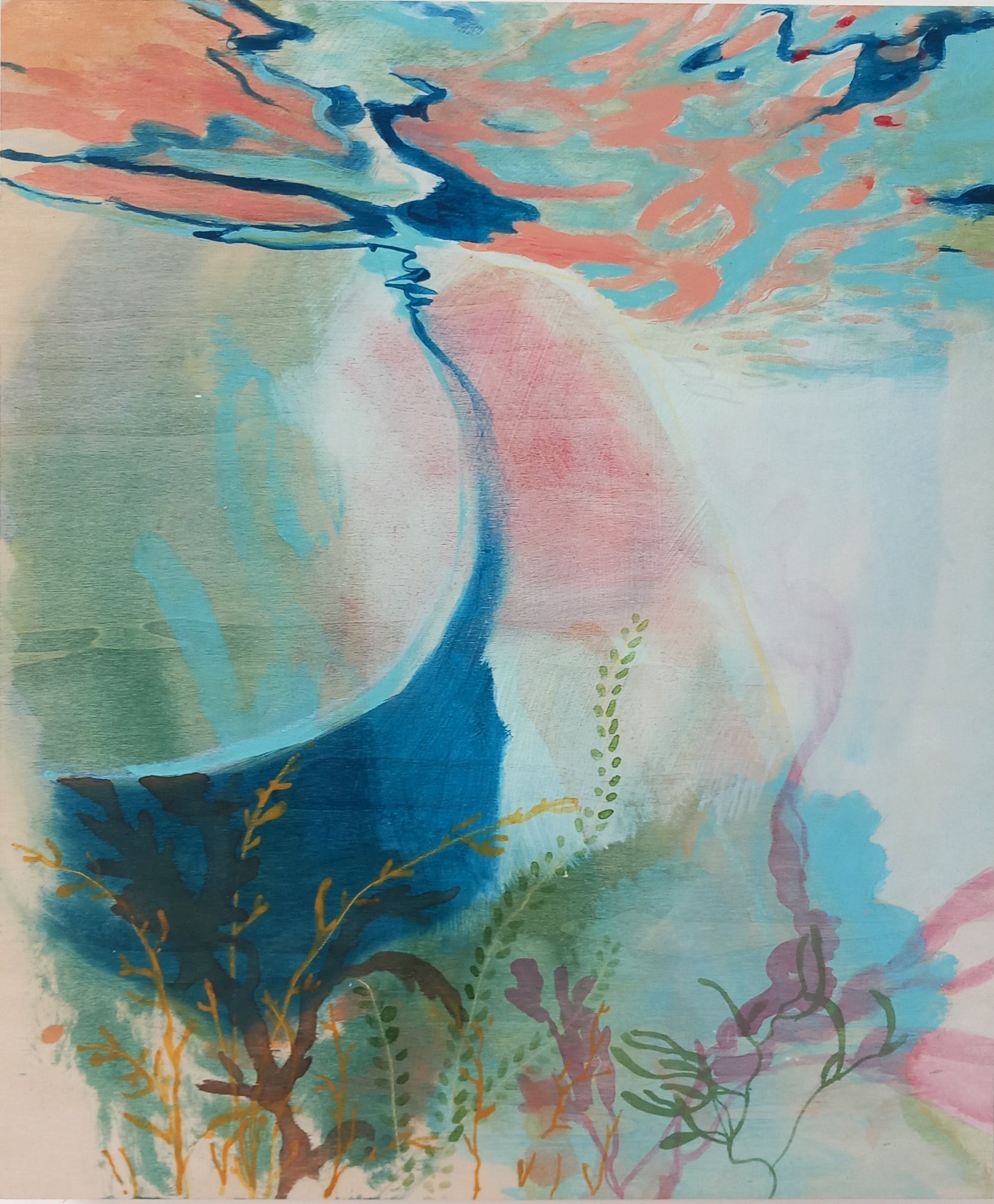 - Mixed media on wood panel