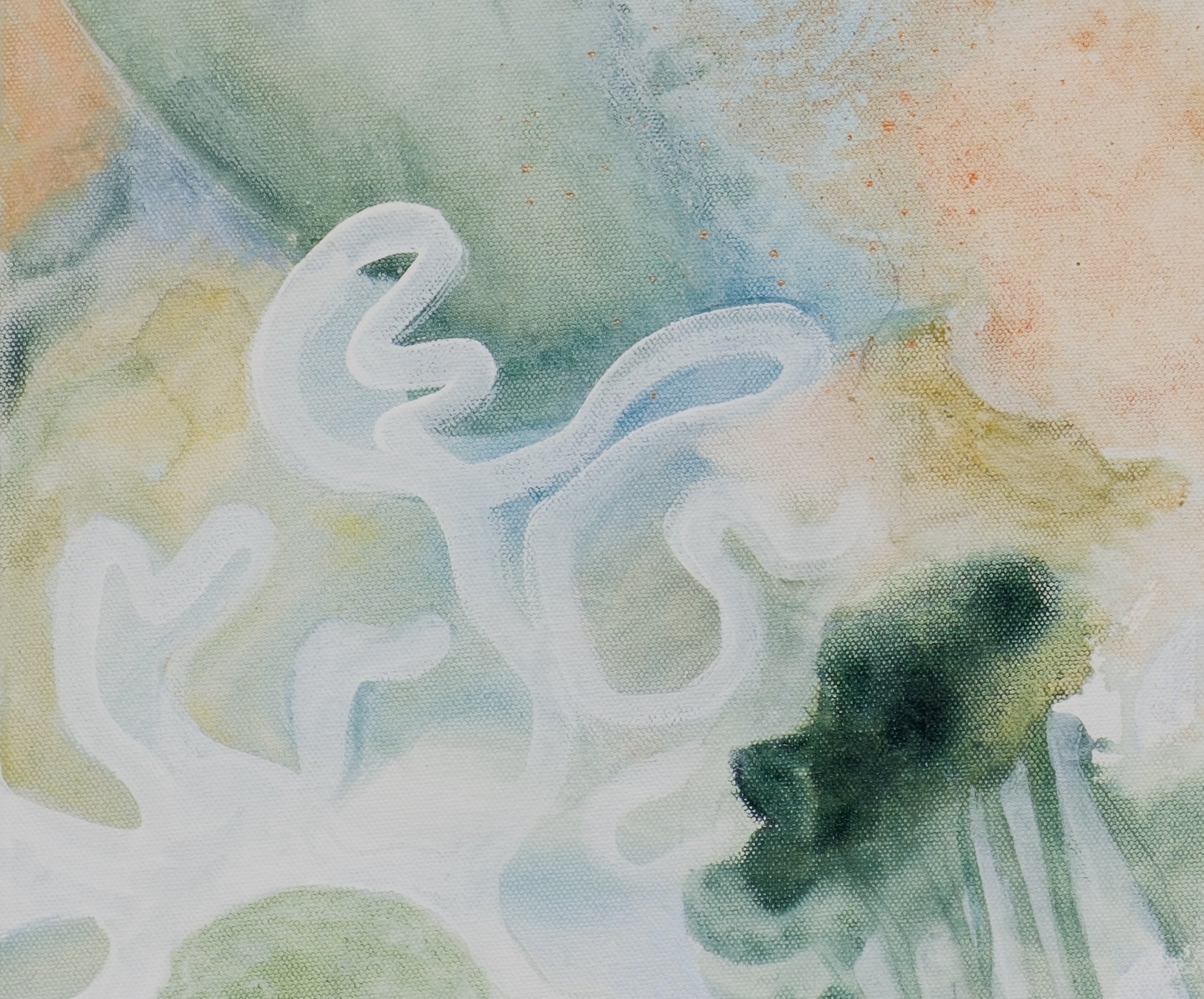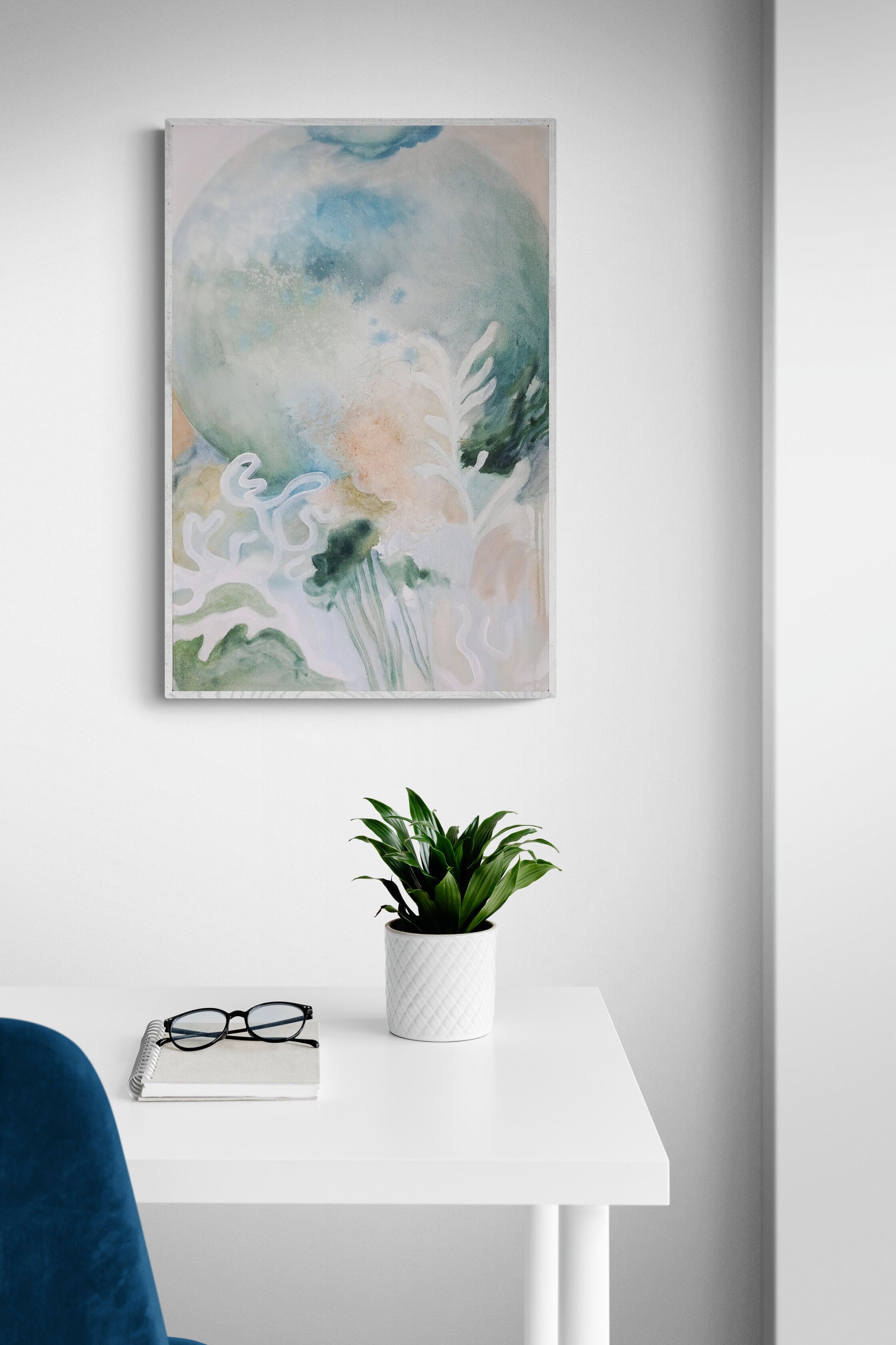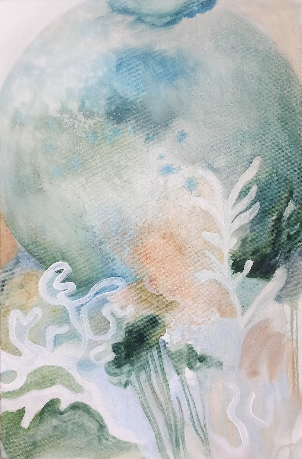 A Solo Painting {not part of a collection}, with its soft colours and a suggestion of the planet we call home, She Who Shall Not Be Tamed came through as if from the earth herself. It speaks of cycles and seasons, of unstoppable regeneration and abundant life.