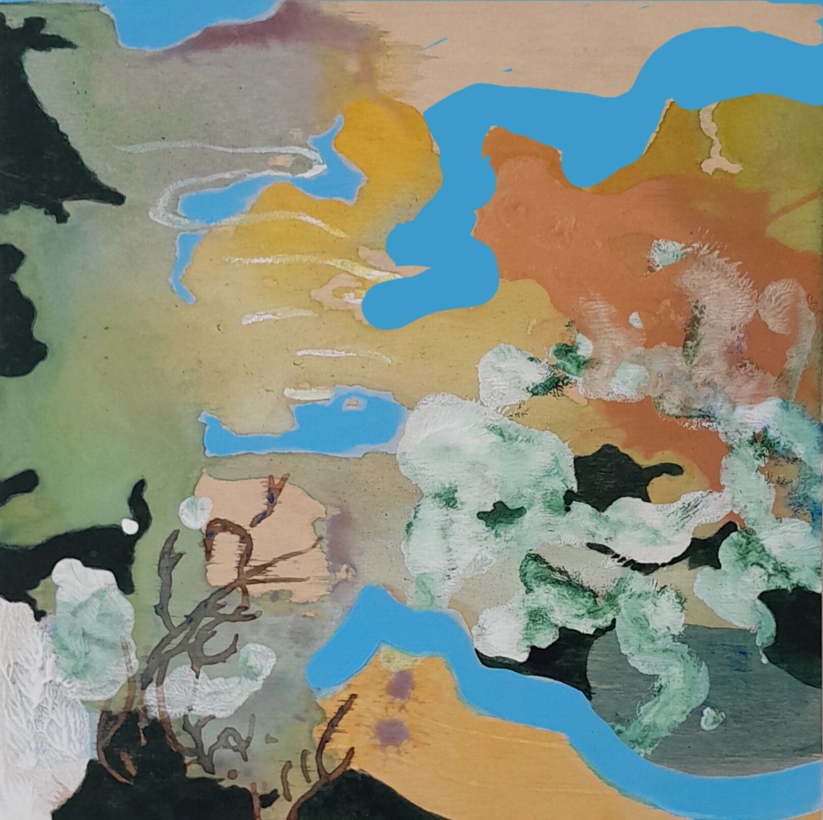 - Mixed media on wood panel