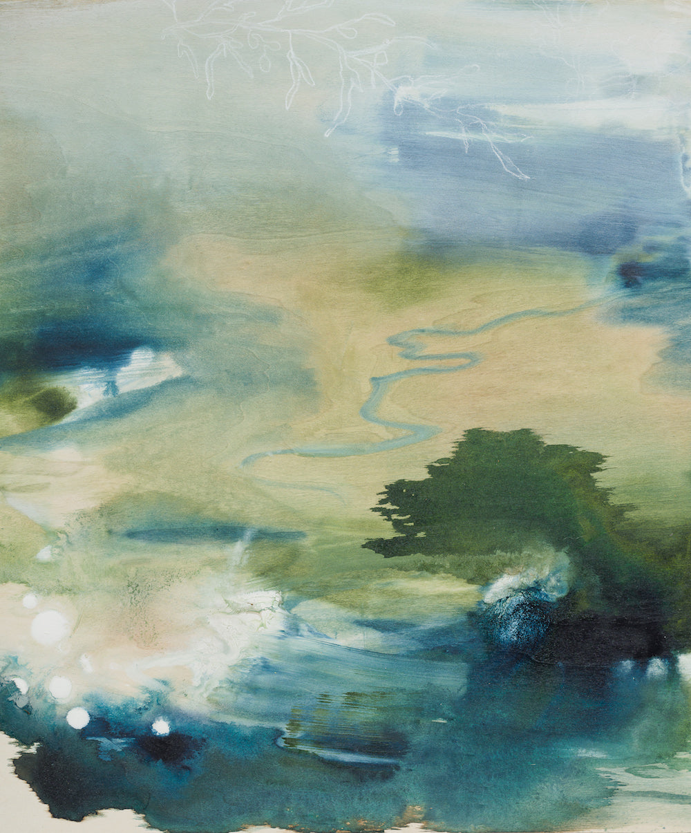 Soft meandering layers and hand drawn elements call to the surface memories of sea swims, the refreshing salt splash, and the movement of water above and below.